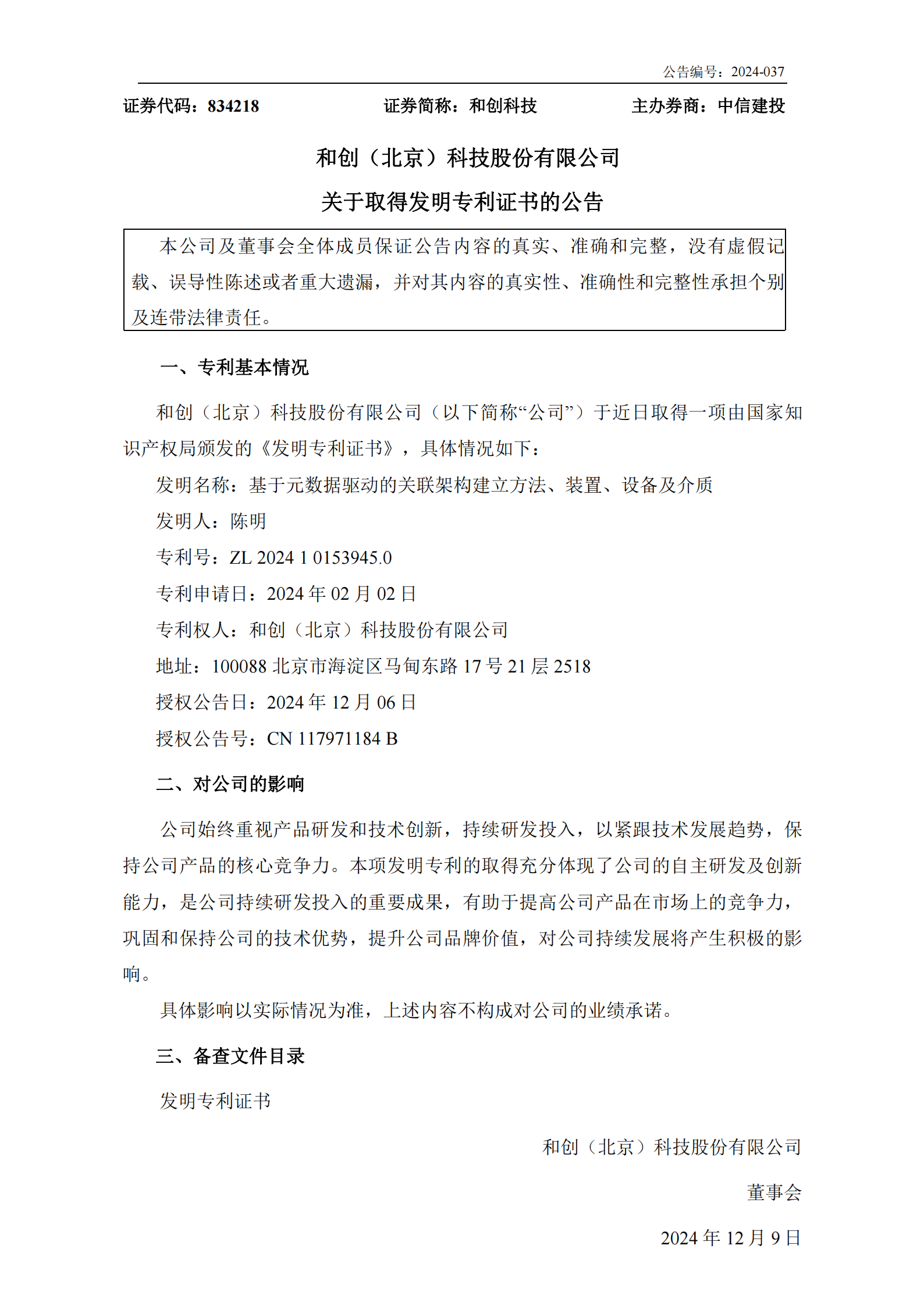 新專利的獲得是公司持續(xù)加大研發(fā)投入、注重技術(shù)創(chuàng)新結(jié)出的碩果。未來,和創(chuàng)科技將繼續(xù)秉承創(chuàng)新驅(qū)動發(fā)展的理念,不斷推出更多具有自主知識產(chǎn)權(quán)的核心技術(shù),為客戶創(chuàng)造更大價值,為社會進步貢獻更多力量。
