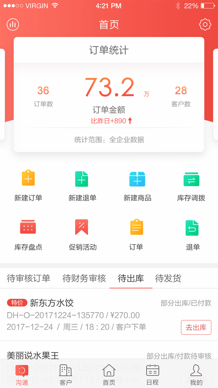 由于小罐茶的熱銷,對各門店的產品調配成為公司管理的重點,這就對公司的訂單流程提出了很高要求。以前,店長或渠道經理將門店的銷量、庫存和訂單數據通過電話或微信等渠道上報商務部,商務部需要在完成對各個門店的數據統計和核對后,再進行訂單處理,速度相對較慢,而且由于是人工統計,難免出現數據遺漏或錯誤的情況。現在,店長和渠道經理通過紅圈訂單提交各個產品的銷量和庫存情況,并在手機上提交訂單,系統自動生成的數據報表,使得商務部非常清楚地了解各個門店的實時銷量和庫存數據,因此可以更加快速、科學地進行訂單處理。由于下單和處理流程都搬到了線上,不僅訂單流程得到了簡化,操作更加簡便高效,數據的準確性也得到了保障。