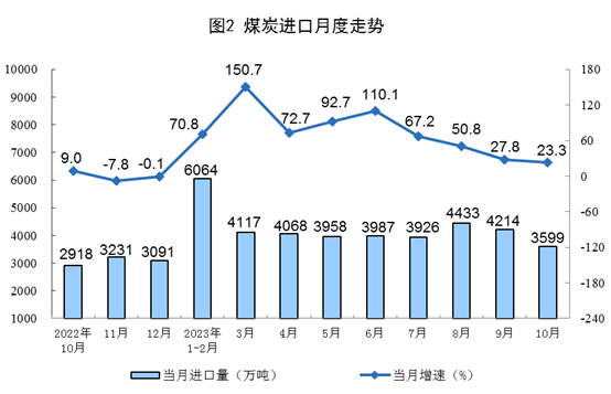 進口數據來源于海關總署,其中2023年10月份數據為快訊數據。