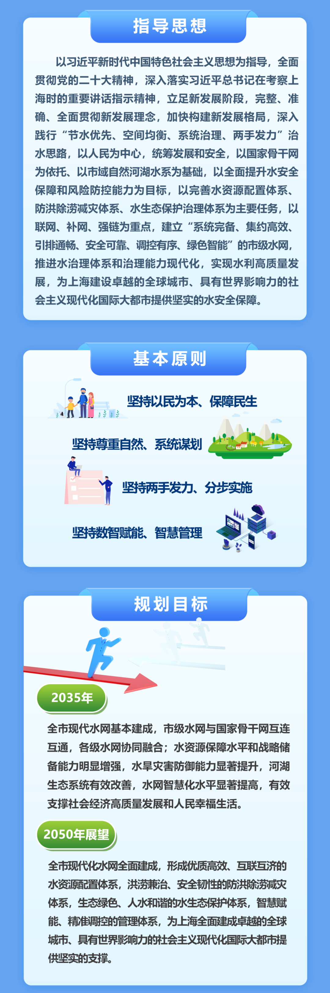 《規(guī)劃》提出,到2035年,全市水網(wǎng)基本建成,市級水網(wǎng)與國家骨干水網(wǎng)互通,各級水網(wǎng)協(xié)同融合;水資源保障水平和戰(zhàn)略儲備能力明顯增強,水旱災(zāi)害防御能力顯著提升,河湖生態(tài)系統(tǒng)有效改善,水網(wǎng)智慧化水平顯著提高,水網(wǎng)管理效能極大提升,有效支撐全市社會經(jīng)濟高質(zhì)量發(fā)展和人民幸福生活。到2050年,全市現(xiàn)代化水網(wǎng)全面建成。
