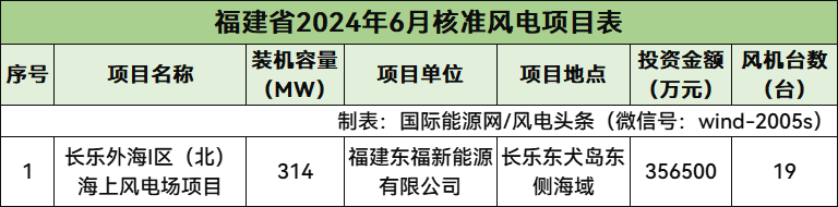 福建核準(zhǔn)1個(gè)風(fēng)電項(xiàng)目,總規(guī)模314MW,為海上風(fēng)電項(xiàng)目。