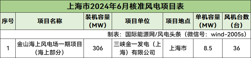 上海核準(zhǔn)1個(gè)風(fēng)電項(xiàng)目,總規(guī)模306MW,為海上風(fēng)電項(xiàng)目。