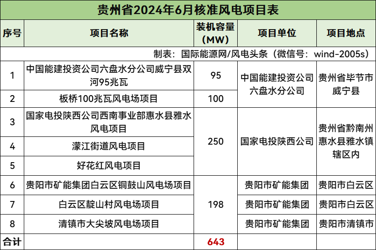 貴州核準(zhǔn)8個(gè)風(fēng)電項(xiàng)目,總規(guī)模643MW,均為陸上風(fēng)電項(xiàng)目。