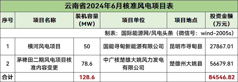 云南核準(zhǔn)2個(gè)風(fēng)電項(xiàng)目,總規(guī)模128.6MW,總投資84546.82萬元,均為陸上風(fēng)電項(xiàng)目。