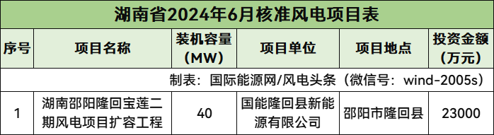 湖南核準(zhǔn)1個(gè)風(fēng)電項(xiàng)目,總規(guī)模40MW,總投資23000萬元,為陸上風(fēng)電項(xiàng)目。