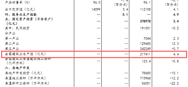 國家統(tǒng)計局:全國建筑業(yè)前三季度總產(chǎn)值217411億元!同比增長4.4%!