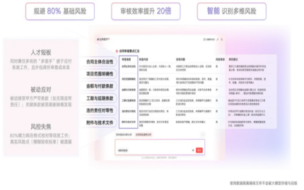 AI業(yè)務(wù)助手就能在這里大顯身手。通過大模型快速理解合同文本,自動標(biāo)出關(guān)鍵的風(fēng)險點、權(quán)責(zé)不對等的條款,并給出修改建議。這相當(dāng)于讓法務(wù)人員可以集中精力攻克最核心、最復(fù)雜的法律問題,審核效率和質(zhì)量都能獲得提升。紅圈AI的介入,讓管理流程不僅自動化,更實現(xiàn)了智能化升級。